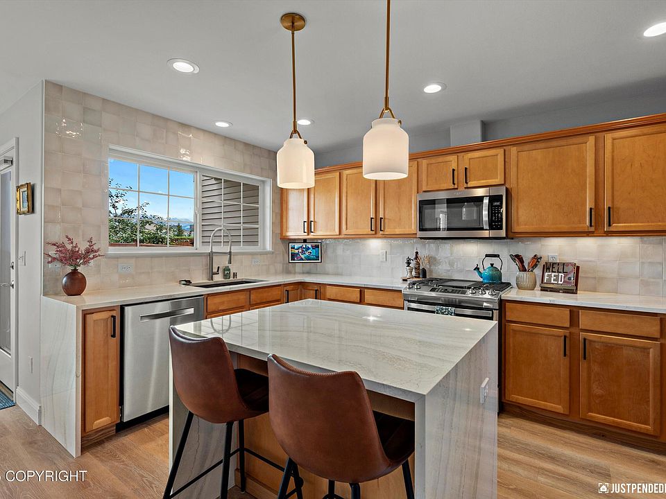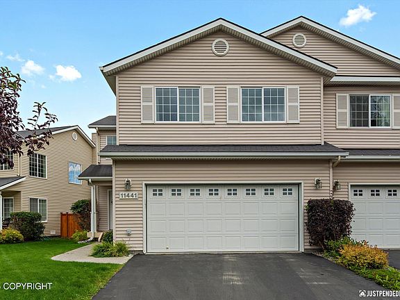 South Anchorage townhome with mountain views! Bright 3 bed 2.5 bath 2 car garage home with vaulted living room and dramatic windows that provide natural light year round. Recent updates to flooring, kitchen and bathrooms have this home turnkey! Home backs the beautiful community green space and is close to trails and shopping. HOA includes snow removal, landscaping, garbage, water/sewer and more!