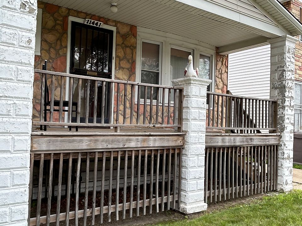 4 large bedrooms, eat in kitchen,living room/dinning room combo newly remodeled partially finished basement, washer and dryer in laundry room, fenced back yard, 1 car garage, close to public transportation