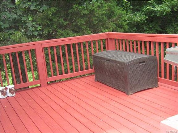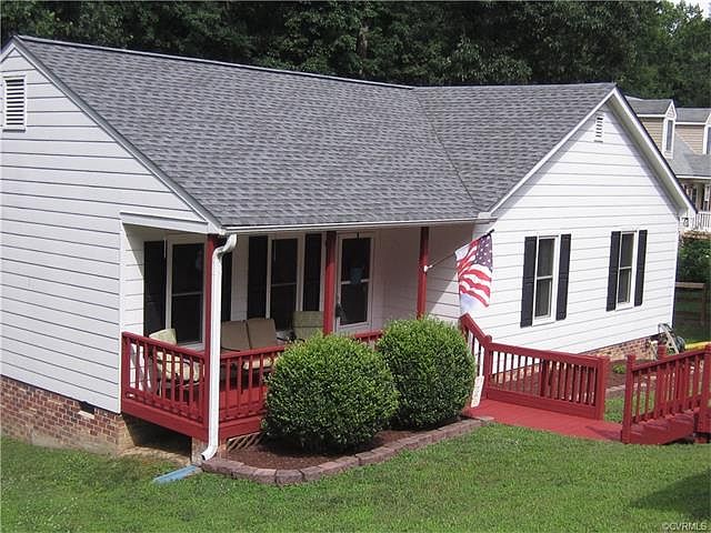 Charming One-Level home on a Dead-end Street in a Convenient Midlothian location. This Well Maintained home is Move-in Ready with , Vinyl Replacement Windows (2009), and Stainless Steel Appliances. The HUGE cathedral ceiling Great Room has New Carpet and Modern Track Lighting. The Spacious Master Bedroom has a Remodeled Full Bath and a WALK-IN CLOSET! Enjoy quiet evenings on the Front Porch or the Stained Deck overlooking the private Back Yard that backs to Woods! There is a walk-in Crawl Space with a full sized access door that has electric and is great for extra storage or even a workshop. New roof 2012; New gutters 2012; Fresh painted siding and new shutters 2013; Fresh paint throughout interior. New toilet in hall bath and faucets in both baths 2017; New lighting fixtures through out home; New flooring throughout June 2017; New HVAC 2010; New plumbing to water meter under house 2016; Rebuilt landing and stairs in front 2016; Stained exterior deck, porch and stairs - June 2017
