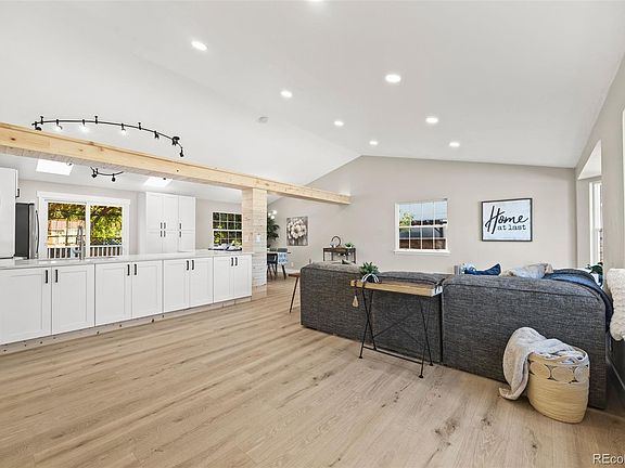 Welcome to this beautifully updated Westminster home! Step inside to find fresh laminate flooring, new lighting, a stunning wood-wrapped post and beam, and a bright, open kitchen featuring quartz counters, white shaker cabinets, new stainless steel appliances, and a spacious pantry. The bathrooms shine with new tile, vanities, and lighting. The vaulted ceiling and skylights on the main level create an airy feel, and the primary bedroom boasts a walk-in closet. Downstairs, enjoy a large family room, an updated 3/4 bath, a bedroom with an egress window, extra storage space, and a utility room with washer and dryer included. Major systems are already taken care of with a new roof, water heater, furnace, and air conditioner. Outside, the front yard is xeriscaped for easy maintenance, and the large back deck is perfect for entertaining. Conveniently located near Ryan Elementary and Park, Sherwood Park, and plenty of shopping, dining, and entertainment options — this home is move-in ready and waiting for you!
