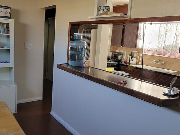 Living room with laminate floor. Dining area with ceiling fan. two bedrooms with laminate floor, one with vinyl floor. One bathroom with tile floor and shower walls. .75 bathroom with tile floor. Patio on the back. Laundry in garage. Close to freeway, shopping and schools.