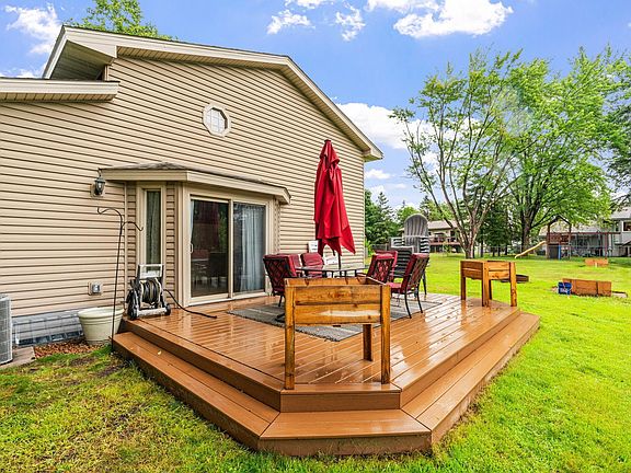 This beautifully maintained 4-bedroom, 2-bathroom home offers standout features and thoughtful updates throughout! Enjoy peace of mind with a new roof and skylight (July 2025), new furnace (2022), and new washer (July 2024). The 3-car heated garage is a dream for hobbyists with ample outlets, while the shed adds bonus storage. Inside, the 3-level split layout provides space and functionality, with a spacious kitchen featuring updated stainless steel appliances, generous cabinet space, and informal dining that opens to a side deck—perfect for entertaining. Natural light pours into the upper-level living room through a large window, and hardwood floors enhance the charm. The upper level includes 2 bedrooms and a walk-through full bath with tiled shower, while the lower level offers a cozy family room and 2 more bedrooms. Located near Andrew Park and Northland Park, plus shopping, dining, and quick access to Hwy 169, this home blends comfort, convenience, and curb appeal with ease!