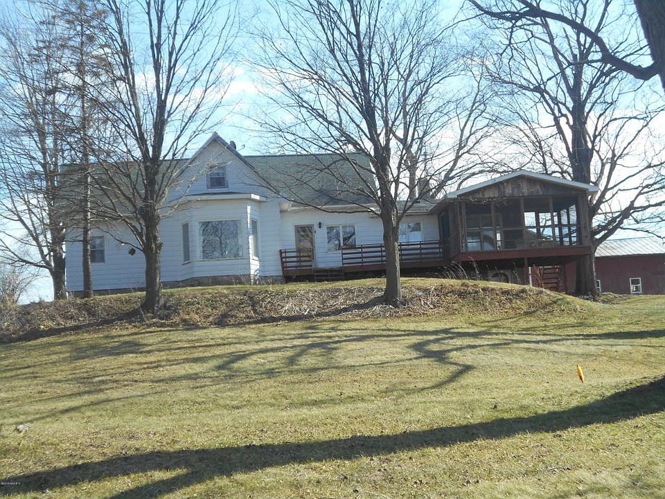 What a great Farm house and floor plan! this Four bedroom Two bath 1900 built and remodeled in 1971 with open kitchen, eating area, formal dining, family room that has sliders leading out to screened in porch, living room with bay window , master bedroom, bathroom, main floor laundry room, UP Three bedrooms and loft area, DN: a WALKOUT basement rec room, and the back michigan basement area> 7 .5 acres Three out buildings> time to run out and Look