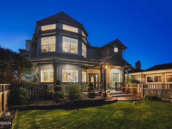 Enjoy the magnificent windows and panoramic shoreline from this meticulously maintained 2005 Victorian home in Beverly Beach! This charming 2-bed, 2.5-bath, 2,042 sqft home combines classic elements with high end finishes and recent upgrades, including: ceramic hardwoods on both levels, new kitchen cabinets, copper farm-sink, electric fireplace, fresh paint, newer interlocking metal roof, upgraded siding, windows, even a guest Murphy bed.