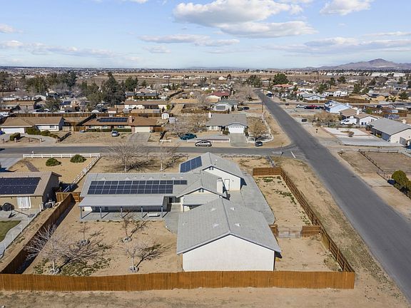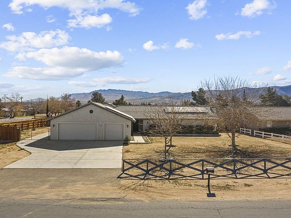 An Apple Valley Beauty! This is a beautiful property that is located on a 21,600-SqFt lot. It is a gated property with energy efficient saving solar panels. This is a very bright and spacious 3 bedroom, 2 bathroom home featuring a nice open floorplan, tile and carpet flooring, high ceilings, plus lots of storage space throughout. Enjoy spending your weekends in a well-lit living room that has a charming corner fireplace that is perfect for cozying up next to during colder SoCal nights. The kitchen has an abundance of cabinet space, glistening countertops and is equipped with built-in stainless-steel appliances. The kitchen also includes a center Island with a built-in cooktop, along with a nice area where you can add a dining table set. There is a laundry room with hookups. Bedrooms have carpet flooring, and they all have a ceiling fan/light fixture. The Primary room is spacious, it has a backyard view, a walk-in closet, as well as a private en-suite bath that has a double vanity sink, and a soaking tub that is idea for relaxing after a long day. The backyard has a large, covered patio and lots of space for you to utilize, all you need are some ideas. You have a huge, detached car garage that fits more than 5 cars, an RV or even a boat. The garage has a convenient 2-way garage door. Located bear Apple Valley High School, Food 4 Less, Stater Bros. Market, popular dining options, AMC Classic Movie Theater and more!