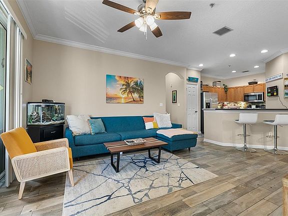 Welcome to Lakeside! This well maintained 2 bedroom/2 bath unit is located on the third floor with no upstairs neighbors! You'll be impressed by the size of the living area in this light and bright unit which includes a good size living room with separate dining area and a spacious kitchen with a breakfast bar and a tiled backsplash. All of the bedrooms are great sizes, the primary bedroom having its own bathroom and walk-in closet, and a spacious second bathroom off the other bedroom. There is also an enclosed outdoor space which is a great space for sitting and relaxing. Features include updated low maintenance wood-look tile, updated bathrooms, crown molding throughout living area, a Google Nest Thermostat, new A/C 2019. The resort like community offers on-site management as well as a Clubhouse with fitness center, swimming pool, grill area, volleyball and walking paths. The units dedicated parking space located at the entrance of the building and plenty of guest parking. The building offers the convenience of an elevator and daily "at your door" trash valet. Conveniently located near Disney, Universal, Downtown Winter Garden, Windemere, local shopping, restaurants and parks. Perfect for your permanent or vacation home.