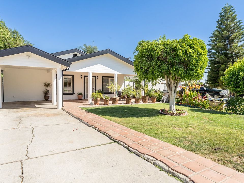 Don't miss out on the opportunity to own this beautiful 4 bedroom and 3 bathroom Lakeview Terrace. Inside features include tile flooring, recessed lighting, crown moldings, window shutters, storage space and more. Bright and modern kitchen with granite countertops, stainless steel appliances, plus beautiful white cabinets. Laundry area inside! Bedrooms are bright and spacious. Each one has laminate flooring, recessed lighting and a large closet. Primary bedroom comes with its own bathroom equipped with a double sink vanity and a stand up shower. Outside presents a lush green yard that includes a lemon tree and tons of privacy. The yard has a huge open patio and a covered patio where you can add outdoor seating. the yard is perfect for relaxing after a long day or for hosting gatherings at home on the weekends. 2-car covered carport parking. Near the 210-freeways. Close to the Hansen Dam Aquatic Center, the Golf Course and Horse Park. Welcome home!