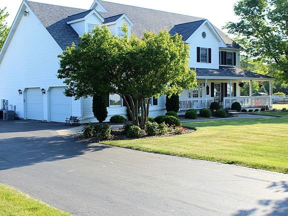 GREAT PROPERTY! 2 story w/fabulous wrap-around porch in front and two decks in the back overlooking 2.7 acres. 4 bdrms + 2 below w/ fin bsmt and 3.5 baths. The open main level allows plenty of room to entertain w/ two patio doors leading to back deck, new pool w/heater, fire pit with heated sitting room to relax or entertain. Master suite w/tray, whirlpool tub & shower, and walk-in closet leading to available attic storage. Add'l walk-ins in bedroom 2 & 3. Heated 2 1/2 car attached garage, a custom garage-size shed and a pole barn w/cement floor & electricity. Horses are welcome. In the last 2 years: New roof, new pool and deck, new Generac whole-house generator. Original owners selling. Property well cared for and it shows. Please note, seller's had roofer remove attic windows that appear in the photos.