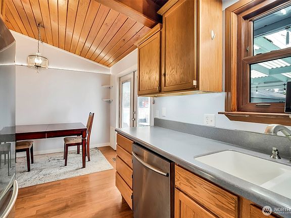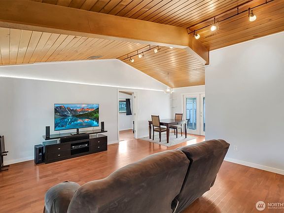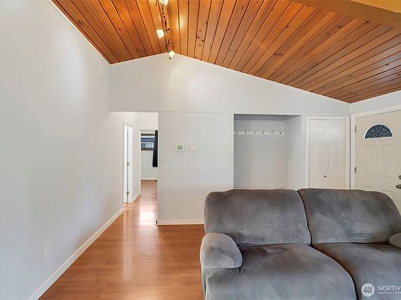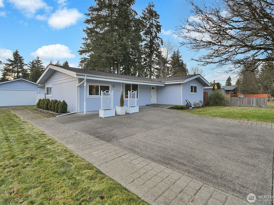 Looking for a corner lot with a garage look no further! This home is just shy 1400 sq. ft. with two bedrooms and an additional room that could be used as an oversized primary or an extra living room. Home has had lots of updates, hard surface counters, hardwood floors, vaulted ceilings, nice large outdoor entertaining area that is completely fenced, garage and a shed. Home has lots of parking and is located across from Scott Lake community field, lake nearby, close to I-5 make your appointment today.