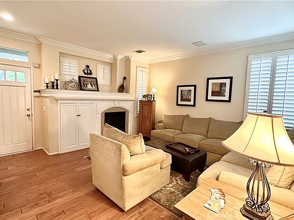 Prestigious and centrally located guard gated Promenade community stand-alone townhouse, updated and upgraded and ready to move into! Upon entering this magnificent 3 bedroom townhome, you are greeted by custom hardwood floors throughout the downstairs. There is a bedroom/den and a full bath on the main level. Large crown molding, stereo speakers in the living room and dining room ceilings, a cozy fireplace accents the living room. The kitchen was recently remodeled with new quartz counters, a new double sink, and has a pass through to the dining room and a breakfast nook. Upstairs, a large master suite with custom shelving in the walk in closet, double sinks and a laundry cabinet, separate shower and bathtub. A second bedroom upstairs, full hall bath and a laundry room also. Also upstairs there is a built in computer desk, perfect for a home office/work station. A private patio off the dining room has a water fountain and BBQ (both included). The Promenade offers a sparkling pool/spa and BBQ area, just steps away, and a private park across the street. HVAC replaced in 2021. Promenade is located in an award winning K- 8 Porter Ranch Community School district (buyer and their agent should verify). Close to the new Vineyards shopping center, which offers a Whole Foods, Lure Fish House, Finney's, Gus's BBQ, state-of-the art AMC theatre, Peet's Coffee, and much more. Welcome home to Porter Ranch living at its best!