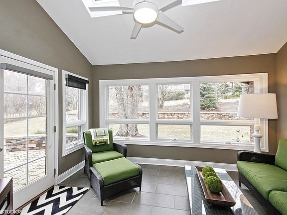 Stunning Tudor updated for today's sophisticated buyer. New white custom kitchen, wood floors. Excellent floor plan for entertaining or family living. Family room is adjacent to the kitchen with vaulted ceiling and centered with a wood burning fireplace. First floor also has an office that could be used for generational living, since there is a full bath just outside the room. The Primary suite has a sitting area with a fireplace and his and hers closets & vanities. New roof, new windows, newer baths. Lower level is finished with exercise room plus sauna and loads and loads of storage. Perfectly positioned in desirable Burr Oaks Glen North. Includes brick paver patio w/ retaining wall & professionally landscaped.
