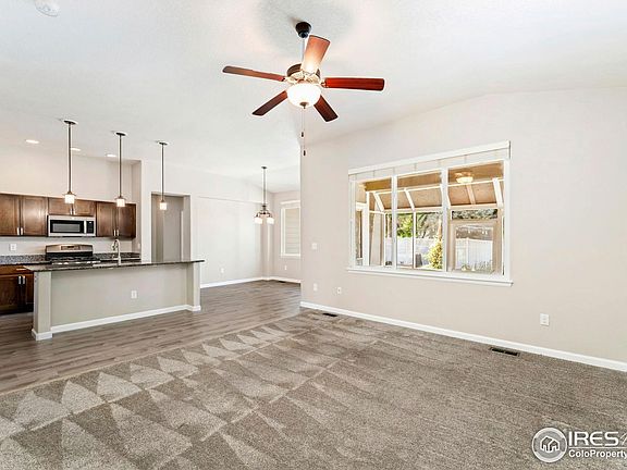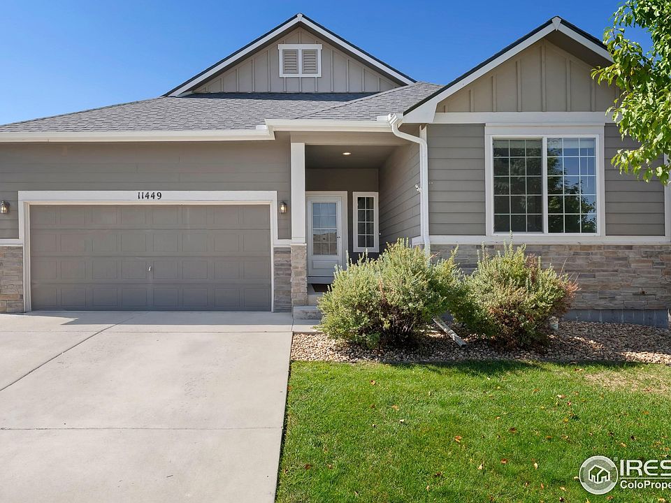 Nestled on a quiet street in Firestone's Mountain Shadows subdivision, this ranch-style home pairs modern updates with inviting spaces inside and out. Thoughtfully designed, it offers 5 bedrooms, 3 bathrooms, and a finished basement that enhances the home's comfort and versatility. An open layout defines the main level, where the kitchen, dining, and living areas flow together seamlessly. The kitchen features granite countertops and a gas range, while a screened-in porch off the dining room provides a natural extension of the living space and a gateway to the backyard. Here, fruit trees, built-in planter boxes, a flagstone patio, and a dedicated dog run create a setting that feels both cultivated and welcoming. The primary suite enjoys quiet separation from the secondary bedrooms and includes a walk-in closet and attached 3/4 bath. Fresh paint, new sinks, and an elegant quartz countertop give this retreat a polished feel. The finished basement features two additional bedrooms, a full bathroom, a wet bar, and a comfortable flex/rec room. With fresh paint in the bathroom and a versatile layout, this level provides space for guests, gatherings, or quiet downtime. Freshly painted baseboards and trim complete the updates throughout the home. Major improvements include a full roof replacement in 2023, a new central A/C with upgraded indoor system (2023), a new dishwasher (2024), and a new microwave (2025). With nearby access to Mountain Shadows Park - complete with playgrounds, open space, walking trails, and the community's new bike park & pump track - this home combines thoughtful updates with a setting designed for everyday enjoyment.