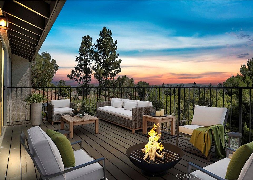 You simply cannot miss this extraordinary AIRPLANE VIEW UNIT located in the most PRIME ELEVATED building in the complex! Views of the Valley and park with spectacular sunsets! This unit has an "extended" huge deck to enjoy yourself or with family and friends. Located in Prime Porter Ranch across from Porter Valley Country Club, walk to shopping and around the corner from the new spectacular outdoor mall "The Vineyards". Very close access to the 118 freeway, Award winning schools, Limekiln Canyon for walking, hiking and playgrounds galore. Unit was just repainted and in impeccable condition. Most popular floor plan with first level entry opens to common area floorplan of living room, dining room, kitchen, full bath and a 3rd bedroom (can be office, gym) which opens to the huge deck! Primary suite and 3rd bedroom each have own bathroom. Kitchen offers slider open to 2nd deck for outdoor dining!