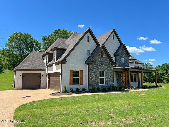 Back on the market at no fault of the seller. MOVE IN READY. Come see this (5) Bdrm, (3) full bath NEW CONSTRUCTION with French country elevation with 1.5 acres in Center Hill School District! Welcome to Olive Branch's newest large acre lot subdivision, Woodland Heights. New home with tons of amenities and a very popular floor plan. Home is 3,479 s.f, (3) car garage and offers 2 Bedrooms and 2 full baths down. The great room has cathedral ceilings, custom fireplace, wood floors and ceiling fan, and open to the kitchen. The kitchen offers custom cabinets, granite, SS appliances, custom backsplash, custom knee wall, SS vent-a-hood, double ovens, gas cooktop, breakfast bar and breakfast room. There is a formal dining room with wood floors, custom/box beam ceiling, crown molding and chair rail. The master suite is stunning with wood floors, tray ceiling, recessed lighting, ceiling fan, walk-through shower, soaker tub, His/Her vanity and His/Her closet. Upstairs, you'll find another 2 Bedrooms PLUS a Bonus/Media room with a closet. Which can be utilized as a 5th bedroom. You also have another full bath upstairs. Other home features are bull nose edging, security system, tankless hot water heater, garage keypad, granite in bathrooms, gutters, custom exterior shutters, beautiful wrought iron railings, gas logs, HUGE covered front porch, covered back porch and SO MANY OTHERS! Est. completion date is end of March-Mid April 2024. Schedule your tour today.