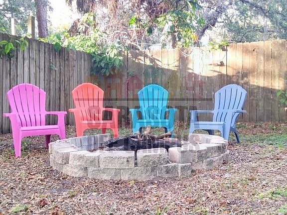 This comfy Three Bedroom One Bath House opens up with vaulted ceilings and rustic Mexican tile. The large full kitchen harbors a garden window above the sink as well as a dining table. The living room has a large leather L-shaped couch and entertainment center. There is a fire pit outside among the many live oak trees on the double lot.