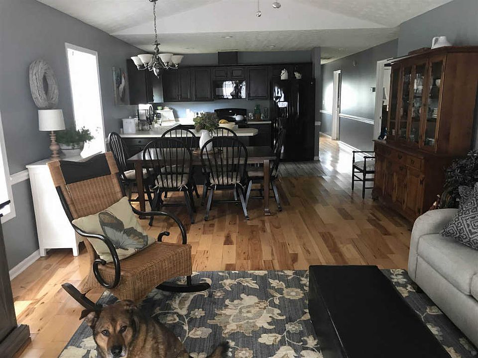 Very cute, well kept home. Property sits on a large pond that offers dramatic sunset views from the back deck. Spacious open concept kitchen/dining and living areas newly painted with all new appliances in kitchen. HVAC approximately 2 years old. Rear deck is brand new. Master and 2 additional bedrooms all on the main level. Convenient Madison location.