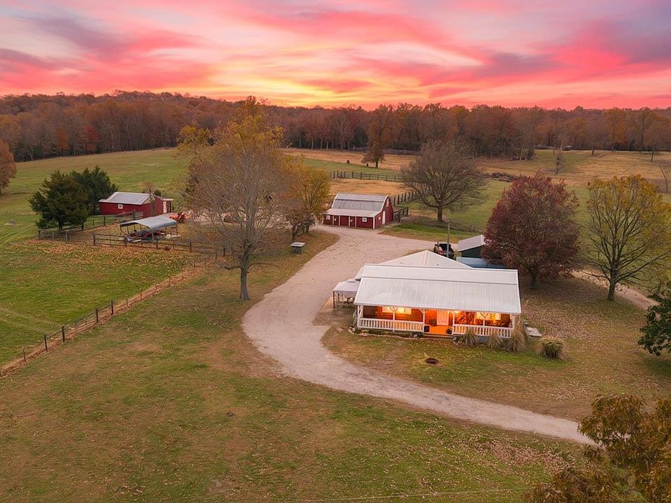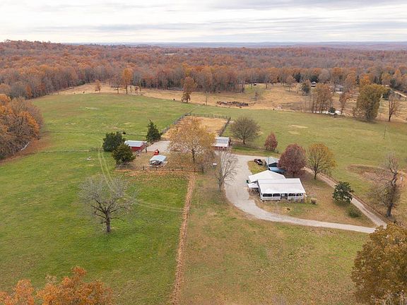 Country Charm on 20 Acres Experience peaceful Ozarks living with this 3-bed, 2-bath farmhouse on 20 fenced and cross-fenced acres. The home features newly installed metal siding and roof, hardwood, tile, and LVP flooring. The kitchen includes quartz countertops, an island, electric stove, dishwasher, and refrigerator (note: current kitchen refrigerator will not stay, but one from the barn will return). Extra closets, an oversized laundry, and a mudroom add daily convenience. Private well and septic recently cleaned. Step outside to a deep covered front porch with ceiling fans, perfect for morning coffee or evening relaxation. The master suite opens to a concrete pad ideal for sunsets or a future addition, while a gazebo patio off the mudroom adds another great gathering space. The property includes three barns—one with loft and storage, another with three horse stalls and automatic water—plus two carports and a circle drive. Approx. 14 acres pasture, 6 acres woods, a pond, and mature trees complete this charming Ozarks setting.