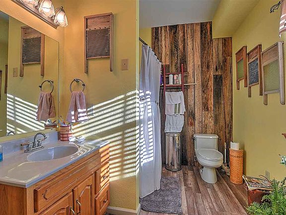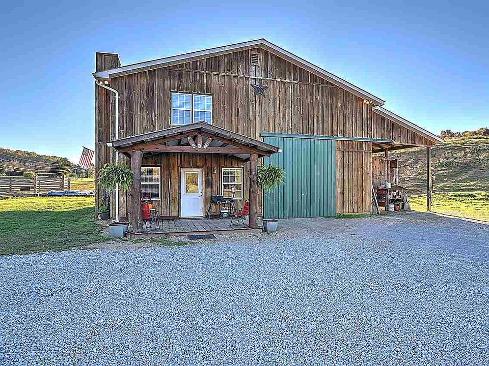 One of a kind custom property on over 4 acres! Home is 1600 square feet with 3BR/1.5BA and features barnwood accents, all tile and vinyl plank flooring. Downstairs features a large living room with gorgeous barn wood accented staircase, wood burning stove, vaulted ceilings and tile flooring. Access to the attached barn area. Large kitchen with tons of cabinet space and eat in area, distressed look cabinetry adds to the rustic farmhouse feel. Downstairs full bath. Upstairs is the large master bedroom with new luxury vinyl flooring and attached half bath. There are 2 additional bedrooms upstairs with new LVP. Has a utility room with washer and dryer. One of the most awesome features of this property is the deluxe barn area attached to the home with lots of storage space, tack room, trophy shelves, 2 12X16 stalls and a 12X8 stall. No walking through the elements, barn access from the attached home!!! Outside is full fenced and offers a 60' round pen for horse training and a huge 70X120 riding arena. Current owners use this great sanded riding area to run barrels. Truly a horse and animal lovers dream.