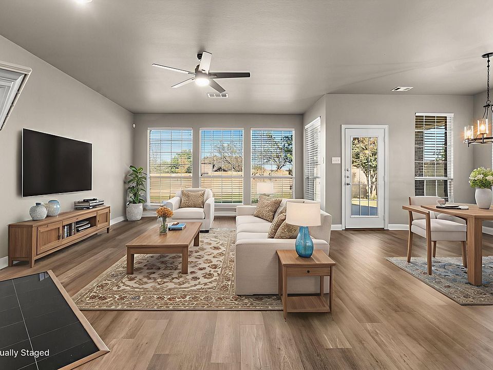 1145 Dayton Drive is a a beautiful 4-bedroom, 3.5-bath residence perfectly situated on a spacious corner lot with plenty of room to relax and entertain! From the moment you step inside, you’ll be captivated by the the home’s open, inviting layout accentuated by the luxury vinyl plank flooring that flows throughout the main living areas. The front entry welcomes you with a private study—ideal for remote work—and a formal dining room perfect for hosting special occasions. The chef-inspired kitchen features granite countertops, ample cabinetry, a large island and a 2025 microwave and dishwasher—the perfect centerpiece for family gatherings. Your primary suite is tucked away on the main level, boasting luxury vinyl plank floors, a spa-like ensuite bath, and a spacious walk-in closet. Upstairs, you’ll find three additional bedrooms and two full baths, along with a spacious game room and a separate media room—the ultimate setup for movie nights or game days! The oversized laundry room comes complete with a sink for added convenience. Boasting insulated doors, the 3-car garage provides both comfort and functionality. Additional upgrades include a 2025 roof. Lantana residents enjoy access to top-rated schools, scenic walking trails, resort-style pools, new pickleball courts, amenity centers, and more. Schedule your private showing today—your perfect home awaits!
