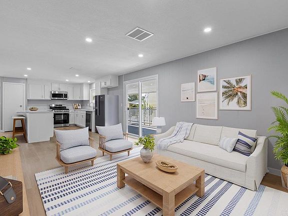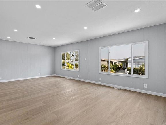 Freshly remodeled home located in a 55+ park with rent control and beautiful amenities! This home features a spacious Living room, formal Dining room, and an additional Family room / Den that is open to the beautifully remodeled Island Kitchen, plus two primary bedrooms, each with it's own ensuite remodeled Bathroom! Both Bedrooms feature a walk in closet. The main Bathroom features double sinks and a large custom shower! The home also boasts new exterior paint, new dual pane windows, LVP floors throughout, quartz counter tops, new exterior doors, new recessed lighting and fixtures, new stainless steel appliances, and so much more! The exterior has one storage shed, a covered porch, and a low maintenance yard. This rent controlled community has a clubhouse, a pool that is heated year round, jacuzzi, billiards, library, shuffle board & a dog park. Conveniently located near Costco, Walmart, Kohls, grocery stores, dining, public transportation, both the Palomar Hospital and new Kaiser hospital & medical offices, and more! Low space rent of only $710.70 per month. One resident must be 55+, while the second resident can be 40+. One indoor pet under 25 lbs is welcome with prior management approval.