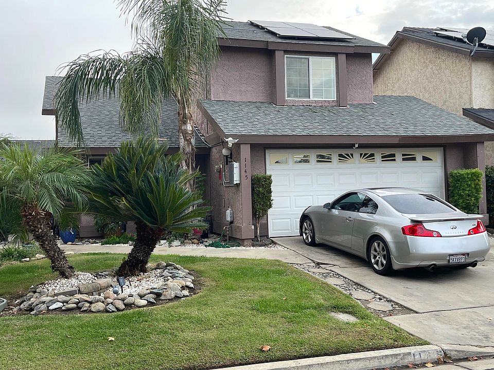 Welcome to this beautifully maintained and energy efficient condo that shows true pride of ownership. This spacious 3 bedroom, 2 bath home offers an inviting layout. This home includes granite countertops, dual-pane windows, and wood look tile flooring. The home is equipped with solar panels for energy savings and a water softening system for added comfort and convenience. The primary suite features a private bath, while the open living area provides a warm and welcoming atmosphere perfect for everyday living. Outside, the community is beautifully maintained and offers access to two sparkling swimming pools. HOA dues cover front yard landscaping, community amenities, and groundskeeping, allowing for low maintenance living. Ideally located near schools, shopping, and major roads, this move in ready home is perfect for anyone seeking comfort, efficiency, and convenience in one of Visalia's most desirable neighborhoods.