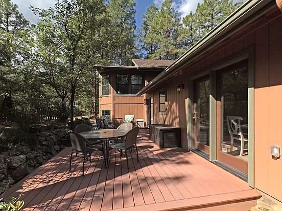 WONDERFUL HOME IN THE PINES OF TIMBER RIDGE! 4-BDRMS, 3-BATHS and nearly 3,000 SF. Beautifully updated and remodeled throughout. Large living room w/brick fireplace and Pella windows w/in-pane blinds. Wood flooring featured extensively throughout. Master Bdrm w/sitting room addition. Luxurious soaker tub and shower in the expanded master bathroom. The remodeled kitchen features a custom built-in buffet w/wine rack; GE appliances, sleek granite counters and gorgeous maple-painted cabinetry with upper-cabinet LED lighting. Lower level office is perfect for the work-at-home professional; or possible in-law/guest qtrs. NEW Exterior paint in 2019. NEW composite deck and low maintenance landscaping on drip irrigation. MOVE-IN READY! Just a 10 min drive to Historic Downtown Prescott.
