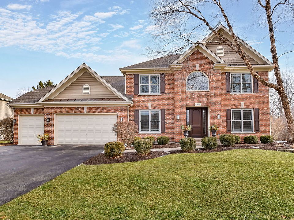 Welcome home to 1145 Keim Court. This classic brick front Eagle Brook home, situated on the 2nd fairway, will knock your socks off. Enjoy a brick paver walkway that leads to your gorgeous front door and stunning entry. The foyer, flanked on either side by a home office and living room, showcases an updated staircase with newer railings, iron spindles and updated wood treads. The living and dining room are nicely sized and can accommodate larger groups for entertaining and also work well for your own daily needs. The amazing 4 season sun room addition, completed in 2016, is separated from the dining room by glass front French doors. Appreciate heated floors and unparalleled views of the golf course. Sellers have loved this space for tv watching, relaxing and game night. The kitchen offers tons of cabinetry, granite counters, a large island, double ovens and additional serving and storage space. The vaulted family room, with skylights, features an updated fireplace, custom built-ins and a beautiful beamed ceiling. The first-floor laundry/mudroom also includes custom built-in lockers to help keep everyone organized. The first-floor half bath is updated and beautiful. The second floor offers four bedrooms plus a small loft area. The primary bedroom suite includes an updated bath with a large vanity with double sinks, soaking tub, glass surround shower and water closet. The newer doors to the walk-in closet and bath are frosted glass. Two of the three bedrooms feature walk-in closets. The shared hall bath includes double sinks and shower/tub. The basement, finished in 2021, showcases a workout room with a wall of mirrors and a glass barn door, custom bath with modern cabinetry and fixtures (shower too) and a custom wet bar area with two beverage refrigerators, quartz counters and custom cabinets. The living space offers built-ins with storage, room for an oversized sectional plus additional seating, and more space for entertaining kids and adults - think gaming, movies, and enjoying sporting events on a large screen TV. The outdoor brick paver patio is accessed from the kitchen and sun room, and has space for outdoor gathering, dining and grilling. Plenty of space for yard games too. Sellers have lovingly updated this home 2013 - All new windows and kitchen door slider; 2014 - New roof; 2014 - Primary bath completely remodeled; 2015 - New front door; 2016 - 4 season room addition; 2016 - All new HVAC and HWH; 2019 - Family room fireplace refaced and cabinetry added; First floor hardwood flooring installed and staircase updated; 2021 - Basement finished. The home also includes an irrigation system, active radon mitigation system, invisible fence (as-is) and a three-car garage. Superior cul-de-sac location, conveniently located close to Western Avenue School. Geneva is a gem with restaurants and shops on historic 3rd Street, Metra and award winning 304 school district.