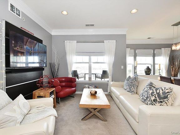 Welcome to 1145 Kirkland Court ! This diamond end unit is located on the 4th floor with a spacious/open floor plan. Beautifully updated 2-bedroom, 2-bath, eat-in kitchen, living room, formal dining w/access to terrace, laundry area in unit & 1.5 car garage complete this unit. This home features new HVAC (heating & cooling), crown molding, boxed wainscoting, two brand-new bathrooms finished with modern fixtures, sleek tile work, and a clean, contemporary design that blends comfort with style. The updated kitchen with water filtration system offers modern cabinetry, corian countertops, and stainless steel appliances—perfect for everyday living and entertaining alike. The primary en-suite offers a full bathroom and a wic, the second bedroom offers two closets. This home combines modern amenities with a prime central location, offering easy access to local shops, dining, and the unique charm Islip is known for. A perfect opportunity for a primary residence, second home, or investment property. Amenities include heated in-ground pool, tennis courts, pickleball court, club house & gym. Maintenance free living at its finest. Welcome home ! Pre-Approval Or Pof required by all.