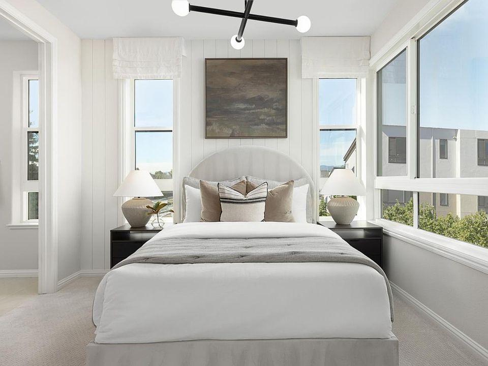 This contemporary home is the epitome of serenity yet centrally located to major tech hubs, downtown, restaurants, and shopping. Five minutes' walk to Seven Seas Park and VTA. Four minutes to 237 & 101. Upgraded with designer finishes and solar. Photos are of model home not of actual home.