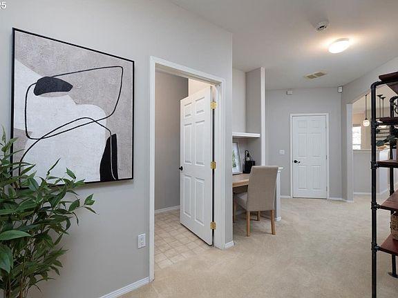 Welcome to highly sought-after Orenco Station! This gorgeous corner-unit condo offers 2 bedrooms, 2 bathrooms, and an oversized attached 2-car garage (side by side) with an EV charger. Freshly painted and move-in ready, the home features a bright and inviting open floor plan. The living room includes a cozy wood-burning fireplace and deck access, while the spacious bayed dining area flows seamlessly into the kitchen—complete with granite bar seating, a pantry, nook, and newer stainless steel appliances (refrigerator included). The primary suite boasts a large walk-in closet and private deck, and you’ll appreciate the additional office space with built-in desk and shelving. A generous laundry and storage room (washer and dryer included) adds convenience. South-facing windows flood the home with natural light, while a newer mini-split heat pump ensures comfort year-round. HOA covers water and sewer. Just outside your door, enjoy the vibrant Orenco Station neighborhood with New Seasons Market, restaurants, cafes, and MAX Light Rail all within easy reach.