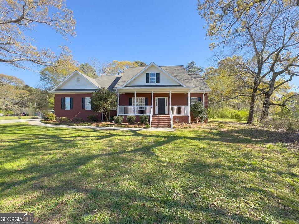 Welcome to this charming 4-sided brick ranch nestled on a spacious lot spanning a little over 3/4 of an acre, offering privacy and tranquility in a serene setting. This delightful home boasts 3 bedrooms, 2 bathrooms, and a host of features perfect for comfortable living. Upon entry, you're greeted by the warmth of a cozy formal dining room, ideal for hosting intimate gatherings or family dinners. The split bedroom plan ensures privacy and convenience, with the master suite situated separately for added tranquility. The large master bedroom presents a serene retreat, featuring an en suite bathroom complete with dual vanities for added luxury and functionality. Enjoy seamless indoor-outdoor living with convenient access to the back porch directly from the master bedroom, perfect for morning coffee or evening relaxation. Recently updated with fresh paint and new flooring throughout, this home exudes a modern and inviting ambiance, ready for you to move in and make it your own. Whether you're unwinding in the spacious living areas, entertaining guests in the formal dining room, or enjoying the serenity of the expansive outdoor space which includes a new outbuilding, this ranch home offers the perfect blend of comfort, style, and convenience. Don't miss the opportunity to make this delightful property your own private haven. Schedule your showing today and experience the timeless charm and peaceful living that this beautiful home has to offer.