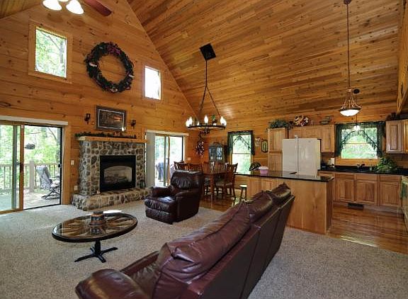 Beautiful log home in Hudson w/vaulted ceilings, granite countertops, finished walk out LL, large deck & more! This lot, on a cul-de-sac, gives you the privacy of a country setting w/the convenience of being in town.
