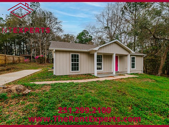 This updated 4-bedroom, 2-bath home in Semmes offers a spacious, open floor plan with modern finishes throughout. Inside, you'll find luxury vinyl plank flooring, updated light fixtures, and an updated kitchen with stainless steel appliances, including a stove, refrigerator, and dishwasher. The bathrooms have also been beautifully updated. The master bedroom boasts an ensuite bathroom, offering a private retreat. Step outside to enjoy a large backyard surrounded by mature trees and a concrete patio perfect for entertaining. Located on a cul-de-sac, this home is within sought-after school zones and offers plenty of outdoor space for relaxation and play.