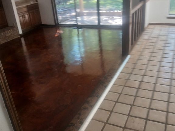 Big backyardBrand new wood flooringBrand new epoxy-coated flooringBack to the creek