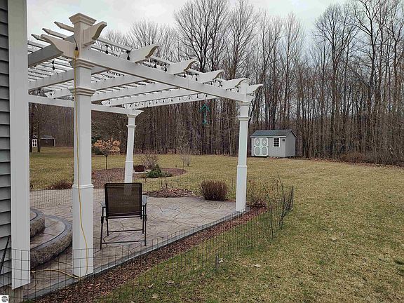Like new, privately tucked behind a majestic stand of pines, this 4/3 is in a marvelous Traverse City neighborhood. A quality Agostinelli Builders home has all of the features that you would expect in a higher price range, Hardwood floors, tile laundry and baths, granite counters, soft close cabinetry, walk-in pantry & closets, tray ceiling, insulated foundation and central air to name a few. Situated on a 0.67 Acre lot that backs up a beautiful woodland, the landscaping includes a patio pergola and irrigation, there is a garden shed and the garage is oversized. Remodel in 2020 finished the lower level with a family room, wall fireplace and fun bar ("Other" in Measurements)! The 4th bedroom and full bath make every guest feel welcomed. It's a sweet package and move in ready right down to all of the appliances, including the 2 mounted TV's. Located conveniently 8 minutes South of the city with easy access to whatever direction you're headed.