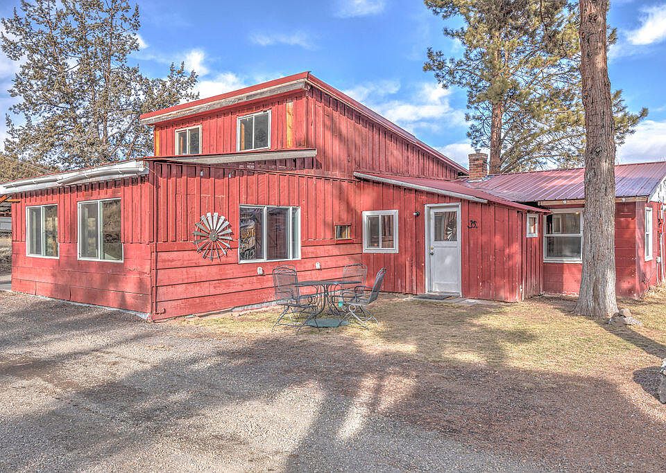 Prineville Cottage that will give you all the character you've been waiting for! Enter to spacious living room with steel staircase leading to open loft. Loft has been used as 3rd bedroom. Bring your ideas!. Open beams, knotty wood details, large main bathroom with clawfoot tub, knotty wood paneled walls, and vanity. No cookie cutter home here! Dining space off kitchen. Lots of nooks and corners to put bureuas or decor. 2nd Bathroom attached to guest bedroom. Attached shop/storage room off back bedroom with it's own root cellar. Could be used as a small hobby shop. Several outbuildings including one that would make a great office/exterior bedroom. Sitting under the rimrock on .69 acre ready for a new owner with ideas. The two bunnies running around have made this property their home and will be expecting to stay rent free. Cool tree fort ready for endless adventures. Near Meadow Lakes golf course ready for someone to see it's possibilities with a little tender love and care.