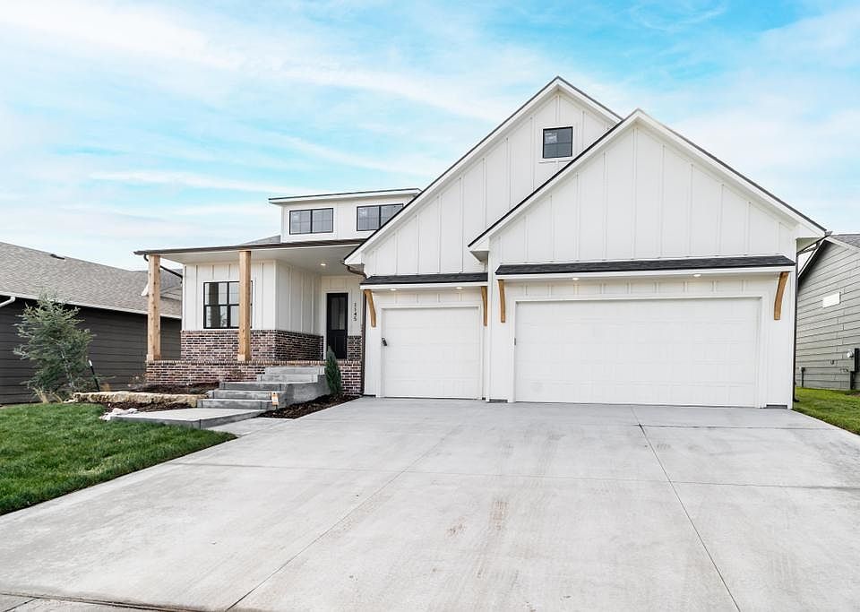 Beverlin Custom Homes offers the new design The Willow in Arbor Creek. Arbor Creek Community offers fabulous amenities such as a fitness center, clubhouse, dog park, pickle ball court and swimming pool! You will be able to relax or play in this unique development in Goddard! When you arrive to The Willow plan you will first notice the large porch and black accent windows. Do you enjoy a home with a true entry? There is plenty of space just inside the front door for organizing your day to day or decorating! There is a custom built bench just inside the entry. Continue down the entry way to the great room and open kitchen. The great room offers large windows for tons of natural lighting. The kitchen has upgraded cabinets, granite counter tops, under cabinet lighting, custom wood range hood and over cabinet lighting. This design is a split bedroom with a master that bestows double tall vanities, tile shower and walk-in closet. Beverlin has created the perfect outdoor living with a large patio that is perfect for relaxing or entertaining! Some information is estimated and cannot be guaranteed. Options and pricing are subject to change without notice.