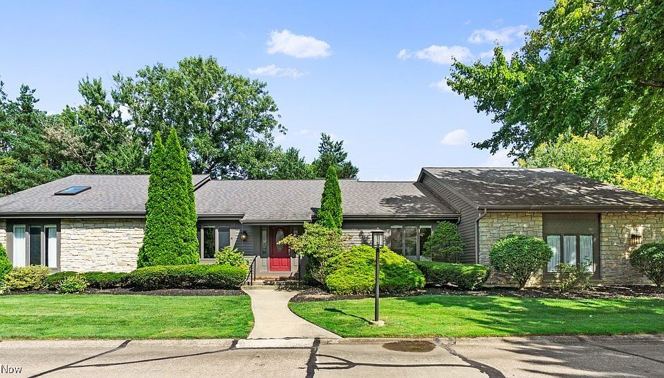 Excellent location to right-size to one floor living in Westlake, a stone's throw to Rocky River near Westwood CC just off Detroit! This 1979 quality-built home is a free-standing home, a condo with modest quarterly association fees providing maintenance to exterior of home, lawncare, and snow removal. An elegant side street, one of the prettiest condo neighborhoods in RR/Westlake, with meticulous curb appeal of every home--variety of trees, shrubs, and colorful gardens, amidst interesting architectural details. No cookie cutter condo here! Lives like a single family home. Perfect for snowbirds or downsizing households still needing one-floor living, with spaces for friends and family to gather. Enter main hallway with immediate sense of height and light. Wood floors. Casement windows. Owner's suite includes two closets, full bath with dual sinks and tub-shower combo. Second bedroom gets great light, and full bath with shower. Loads of storage! Office/Den in front of home with built-in cabinets and a desk. Living room is enormous with high beamed ceilings and stone fireplace. Dining area open to living room, just off kitchen. Wet bar. Tidy eat-in kitchen with white cabinets and solid surface countertops. Tiled floors. Breakfast room area opens onto private patio in rear of home and glorious gardens with annuals and perennials. First floor laundry room, powder room, and two-car attached garage. Favorite spot in the home-- the private screened in porch accessible from owner's suite or living room. Basement offers space for storage, hobbies, and mechanical area. Rarely available for sale, come have a look at this lovely Stonewood property, and get ready to make your move!