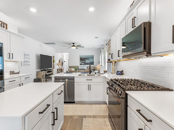 Better Than New – Stunning 2023 New Build with Private Heated Pool in Wildflower Ranch! Why wait to build when you can have it all right now? This better than new 2023 home in the highly sought after Wildflower Ranch subdivision is loaded with premium upgrades and thoughtful details that make it stand out. This gorgeous 4 bedroom, 2 bathroom home offers an open concept layout with 9 foot ceilings, creating a spacious feel perfect for entertaining or relaxing. You're welcomed by an elegant board and batten foyer that sets the tone for the tasteful finishes throughout. The family room features a custom floor to ceiling stone fireplace that adds warmth and style. It flows seamlessly into the modern kitchen and dining area, featuring top of the line appliances, above and under cabinet lighting, and custom finishes. There’s not a single builder basic finish every fixture and surface has been upgraded for luxury and longevity. Step outside to your private backyard oasis, a beautifully landscaped space with a heated pool and covered patio. The front yard features custom stone border landscaping, Govee exterior lighting, seamless gutters and downspouts, and manicured landscaping for superb curb appeal. Whether relaxing or hosting friends, this home is made for both comfort and entertainment. Inside, enjoy all new light fixtures and ceiling fans, blackout and heat resistant window treatments, matte black Kwikset door handles, plus all new Kohler faucets and toilets. Exterior Anderson storm doors add elegance and energy efficiency. Every corner has been curated with quality and comfort. Located in vibrant Wildflower Ranch, you'll enjoy great amenities, community events, and easy access to shopping, dining, and top rated schools. Preferred lender offering up to an additional 1% of loan amount as buyer credit. This is more than a home it's your next level lifestyle upgrade. Schedule your showing today, homes like this don’t last!