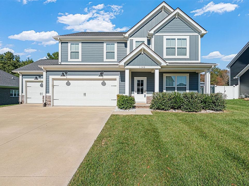 Better Than New & Priced to Sell. Welcome to 1145 Yorktown Lane, where modern comfort meets unbeatable value! Built in 2022, this stunning 4-bedroom, 2.5-bath home offers all the space and style you’ve been looking for, plus a 3-car garage, office, and loft area for flexible living. You’ll love the open-concept main level featuring LVT flooring, a coffee bar, and a bright kitchen with GE stainless appliances, granite countertops, and a tile backsplash. The cozy gas fireplace anchors the living area, and the covered walk-out patio overlooks a beautiful tree-lined backyard on a quiet dead-end road, the perfect space to relax or entertain. Upstairs, you’ll find a spacious primary suite with a jetted tub, tiled shower, and a large walk-in closet. A convenient laundry room (with folding table) and loft/flex space sit just steps away from the additional bedrooms. This home has been thoughtfully updated with fresh paint, new carpet, and new blinds, making it move-in ready! Enjoy peace of mind with a tankless water heater, irrigation system, and the washer & dryer included. Seller Bonus: With an acceptable offer, the seller is including a full home inspection by a licensed inspector and offering up to $3,000 toward closing costs! Value Alert: Priced $40,000+ below market value, this one won’t last long. Come see why this home is the perfect blend of modern style, space, and savings. Schedule your private tour of 1145 Yorktown Ln today!