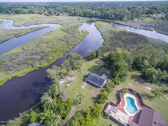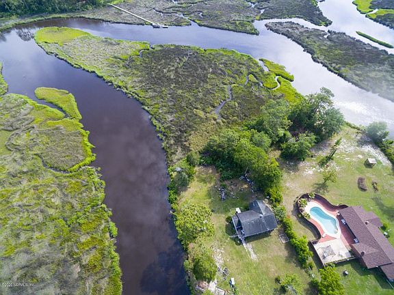 DEEP WATER STUNNING WATERFRONT 4.98 ACRE PROPERTY WITH BREATHTAKING VIEWS! This is a very special property, you will feel it once you step out of your vehicle and are greeted with wide creek and marsh views. Peace and serenity guaranteed with approx. 460 feet of wide Dunns Creek Frontage. The property consists of two homes. The main house is a 1-story 1 bedroom 1 bath bungalow built in 1954. There is another room used as a bedroom, but does not conform. The guest house was built in 1969. It is a 2-story structure with two 1-bedroom, 1-bath up/down setup. There is approx. 3.35 acres of salt marsh buffer, increasing your privacy and magnificent views. Fish from your creek bank just outside your front door. Watch the wildlife including Manatees and Dolphins. Boater and fishing paradise!