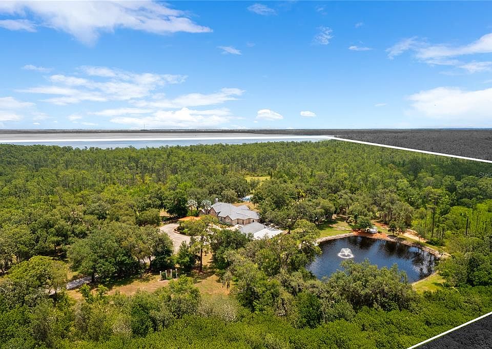 Welcome to The Lake Louisa Chateau grounds—an unparalleled 54+ acre land offering where natural beauty, location, and endless possibilities converge. Perfectly positioned just 45 minutes from Disney, Universal Studios, and the newly opened EPIC Universal Resort, this extraordinary property enjoys a prime setting on the shimmering shores of Lake Louisa, the crown jewel of the Lake Louisa Chain of Lakes. With over 1,500 feet of private shoreline, the property showcases sweeping sunset views and nightly Disney and EPCOT fireworks on the horizon. Outdoor amenities abound with two tranquil lagoons, a large dock with three boat slips and two lifts, and wide-open grounds ideal for equestrian use, future development, or a private retreat. The acreage also features recreational enhancements including a professionally designed 9-hole disc golf course and a multi-use pickleball, basketball, and shuffleboard court. The scale and versatility of this property are unmatched, whether you envision creating a luxury equestrian estate, developing resort-style facilities, or simply preserving it as a private lakefront sanctuary. Rarely does land of this size, privacy, and lakefront presence come available in Central Florida. This is a once-in-a-generation opportunity to secure a legacy property in a premier location.