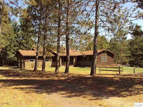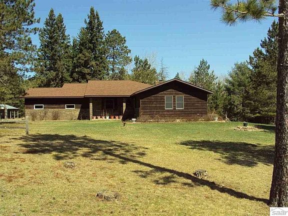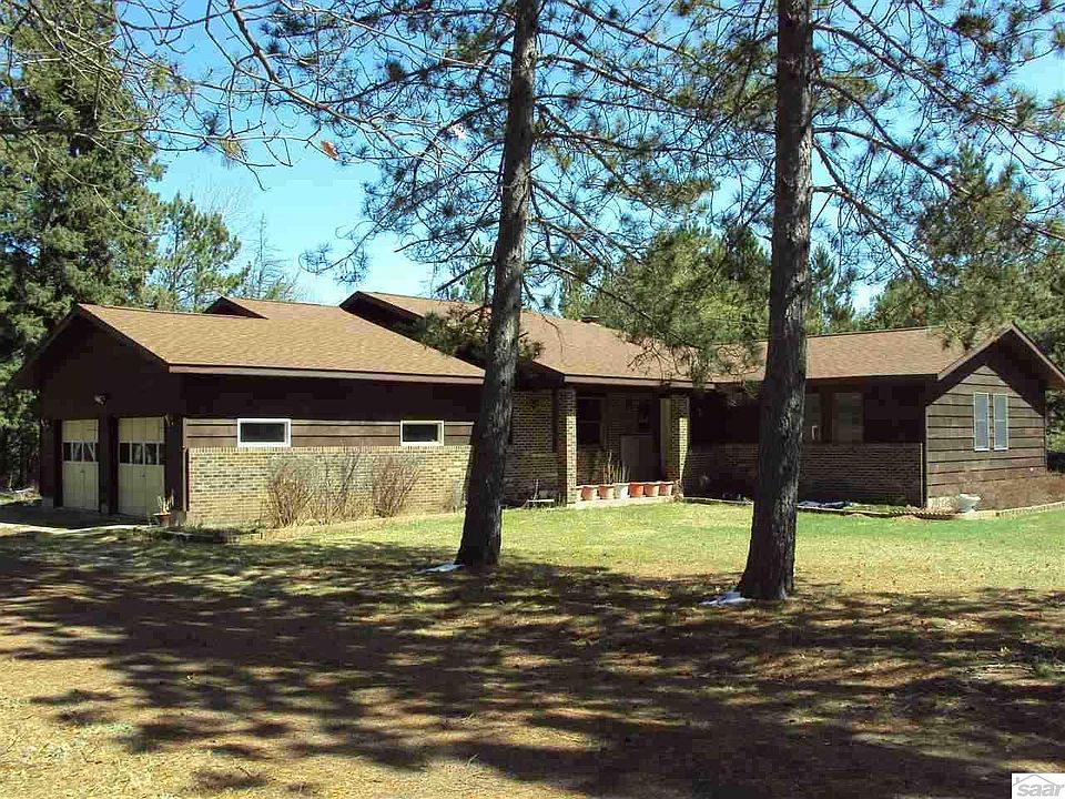 Custom designed and built, very spacious 3BR 2-bath ranch style home with oversize two-car attached garage and wood burning fireplace on 40 beautiful rolling acres. Mature pines and spruces surround this ideal Northwoods setting in the heart of an area loaded with many year-round outdoor activities; trails, fishing, hunting, hiking, camping. Only 2 miles to Stone's Bridge on the world-famous Brule River, but still just 30 minutes from Superior. Anderson double hung windows, tons of full height cherry cabinets in a large well designed kitchen, loads of storage, main floor laundry, gigantic unfinished basement with double door walk-out. Combined dining & family room with wood-burning brick heatilator fireplace. Almost new LP gas furnace and central air, plus a wood-burning furnace. This has been a smoke free, pet free house, and will be home to some very happy new owners. Additional structures include a tin storage shed and an aging homestead cabin.