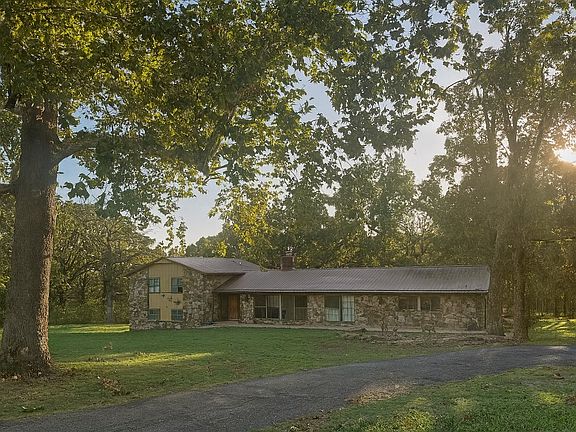 Spacious 3,885 sq ft home on 29.23 acres with six bedrooms and four bathrooms. The property features recent remodeling throughout, including updated flooring, paint, and finishes. The main living area offers large windows for natural light, a stone fireplace, and an open layout. The kitchen includes granite countertops, white cabinetry, and stainless steel appliances. The home also includes a laundry room with sink and storage, a two-car garage, and a private balcony off the primary bedroom. Outdoor amenities include a large deck overlooking mature trees, perfect for relaxing or entertaining. For agricultural or business use, the property includes six 300 sq ft greenhouses—each equipped with 40 fans, 15 electrical outlets, and enclosed by fencing—with a 20 ft gravel road providing easy access. Additionally, a 2,925 sq ft insulated warehouse offers ample workspace or storage potential. Rural water service is connected. Located in a quiet, country setting with open acreage and tree-lined views, this property provides space, versatility, and privacy.