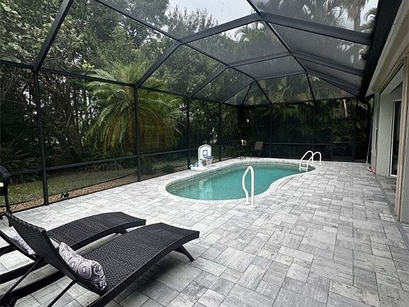 Step inside this inviting home nestled within the highly sought-after, gated Stoneybrook Golf Course Community. From the moment you enter, you’ll be greeted by an abundance of natural light and open space, highlighted by expansive sliding glass doors that frame tranquil views of the private pool and lush wooded preserve beyond.