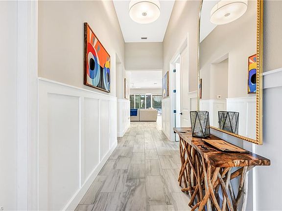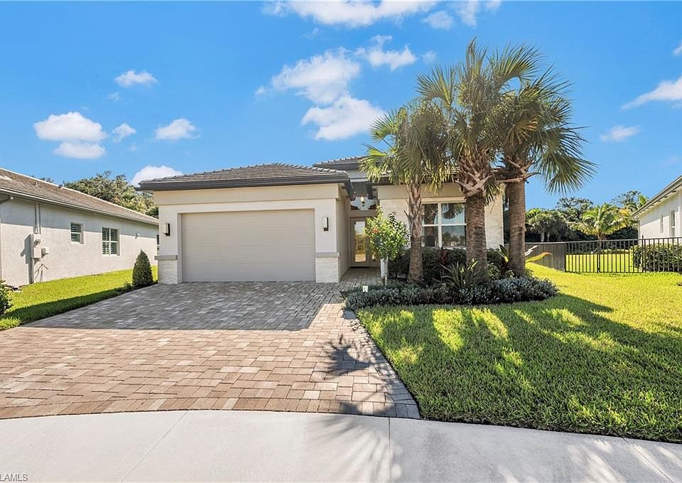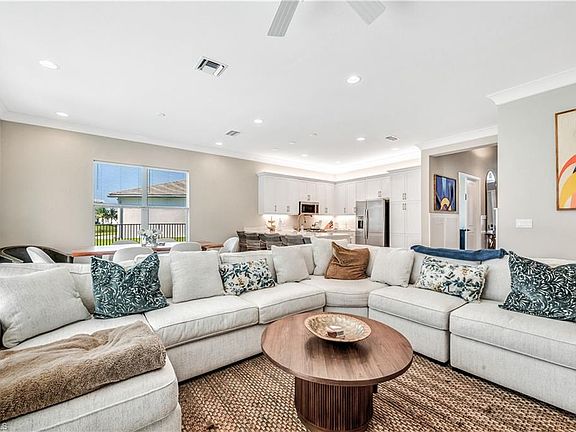 Welcome to this stunning newly built residence situated on one of the most secluded and private lots within Valencia Trails. This elegant 3-bedroom plus den, 3-bathroom home offers a contemporary open-concept layout that seamlessly blends style and comfort. The spacious living room is adorned with sleek built-ins, designer shelving, and an elegant entertainment wall, all bathed in natural light from the expansive sliding glass doors that invite you out to a private lanai. Your gourmet kitchen is a chefs dream, complete with a natural gas range, pristine white cabinetry, and an oversized peninsula with ample seating for entertaining. The living and dining areas flow effortlessly, enhanced by modern finishes and upscale touches throughout. Retreat to the primary suite, a true sanctuary with plush furnishings and soft, neutral tones. The en- suite bathroom is a spa-like haven, featuring dual vanities, luxurious countertops, and an expansive glass-enclosed shower that exudes relaxation and sophistication. Step outside to the upgraded pool and spa area, a private oasis surrounded by lush landscaping. The resort-style pool is complete with sparkling mosaic tile details, a built-in spillover spa, and a screened lanai that creates the perfect indoor-outdoor Florida lifestyle. Whether lounging poolside or hosting gatherings, the tranquil lake views serve as the perfect backdrop. Valencia Trails offers an unparalleled lifestyle with world-class amenities, including a 43,000 sq. ft. clubhouse, a sprawling recreation complex, and scenic walking trails. Live the Florida dream in this luxurious and secluded home, where elegance meets ultimate comfort and privacy.