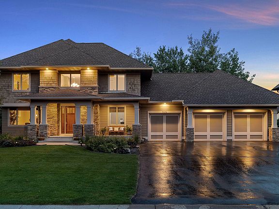 A standout custom home with a feature list that doesn't end. Stunning & distinct prairie craftsman style built in one of IGH's most sought after neighborhoods - Broadmoor. Near the best schools in top rated Eagan/ISD196 and Lebanon Park & Trail system. Eye-catching with sleek rooflines, triple (heated) garage & large front porch clad with stone, columns & pillars. Step inside to soaring ceilings that open up around a central staircase. The spacious gourmet kitchen & expansive island is fully open to the dining & living room with wall to wall windows viewing the ENORMOUS deck, lush landscape & mature trees of the backyard. 3 bedrooms and laundry up with private owner's suite that has all the luxuries. DREAM walkout lower level is built for relaxation with sauna, showcase wine cellar, wet bar + game room. Steps out to patio & flagstone firepit. Exceptional quality of construction throughout - Hardie siding, solid 3 panel doors, built ins, custom tile...Truly a special place to call home.