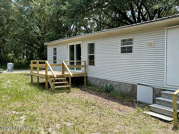Newly renovated 4-bed, 2-bath double wide, 1404 SF AC area (1836 total SF). This manufactured home comes with new metal roof, new vinyl floor, fresh paint, new water heater, new energy-efficient AC, and new well/pressure tank. This house features split floor plan with separate living room and dining room, a spacious primary bedroom suite with walk-in closet, a kitchen with new cabinets and countertop, new SS appliances and updated plumbing. Home is situated on 1.06 acre land, easy commuting to Gainesville and Starke. Come and see this beautiful oasis in the heart of Hampton!