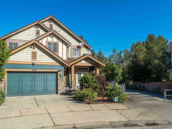 Panoramic Water, Mountain & Park Views in Fraser Heights! This beautifully crafted 5-bedroom, 4-bath residence built by Morning Star offers sweeping views from every level. The impressive 18’ great room showcases five picture windows, a Tuscany-inspired gas fireplace, and engineered oak flooring, creating a warm and elegant living space. The gourmet kitchen features a granite island, designer cabinetry, and 10’ ceilings, with an adjacent den for added versatility. The vaulted primary suite includes a picture window framing stunning views, along with a spa-like 5-piece ensuite. The walk out fully finished basement is complete with a bedroom, full bath, movie room, and spacious living area. A private courtyard entry with stone pillars adds charm and curb appeal. Move in ready. Shows AAA+++