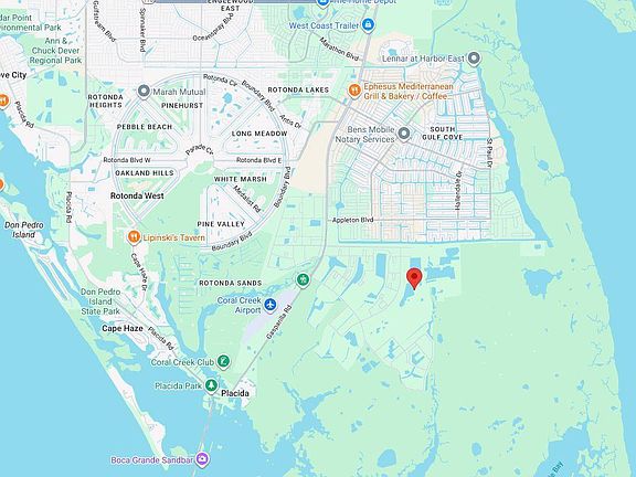 0.58+/-ac waterfront residential lot in the Meadows and Villas neighborhood. Located near the Coral Creek Airport and Coral Creek Golf Club. Nearby access to multiple marinas at Gasparilla Sound with access to the Gulf.